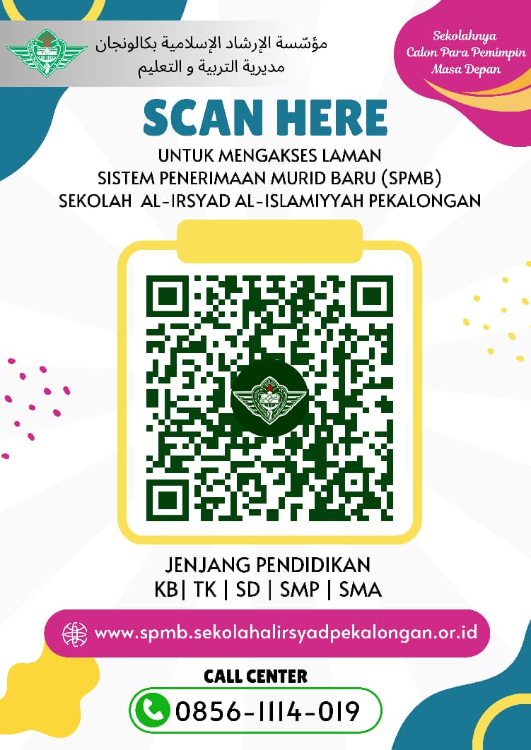 Alhamdulilah... Perguruan Al-Irsyad Al-Islamiyyah Pekalongan telah membuka Pendaftaran Peserta Didik Baru Tahun Pelajaran 2026/2027. Pendaftaran dibuka secara Offline dan Online.